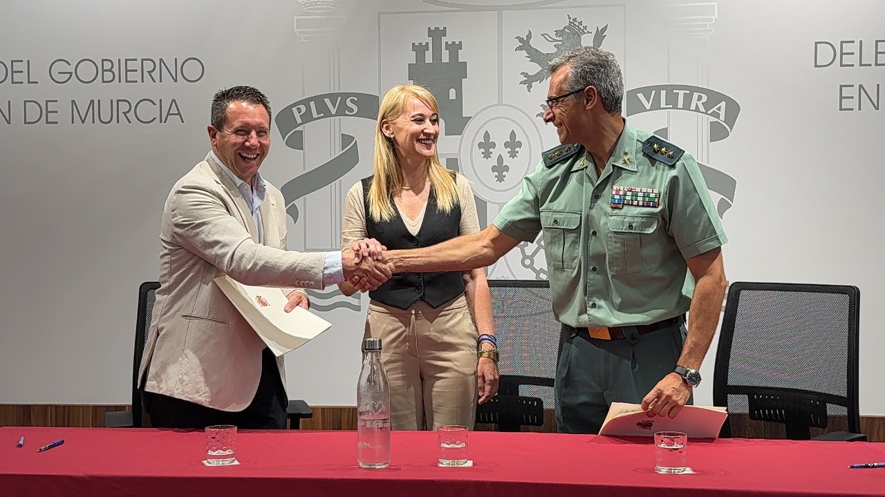 24 June 2025. The delegate of the Government has today presided over the signing of the protocol of collaboration and coordination between the Civil Guard and the City of Mula for the incorporation of the Local Police body to the system of monitoring cases of gender violence (VioGén System), in which she has encouraged the other municipalities to promote their adhesion after the rubric by the mayor of the town, Juan Jesús Moreno, and the Colonel Chief of the 5th Zone of the Civil Guard, Francisco Pulido.