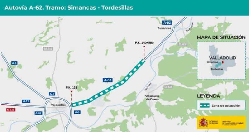 17 d'octubre de 2023.- El Boletín Oficial del Estado publica hui l'anunci de la Demarcació de Carreteres de l'Estat a Castella i Lleó Occidental sobre Resolució del Ministeri de Transports, Mobilitat i Agenda Urbana per la qual s'aprova l'expedient d'informació pública i el projecte de traçat per a millorar la capacitat i funcionalitat de l'Autovia de Castella A-62, entre Simancas i Tordesillas, del quilòmetre 140,5 al 151.
